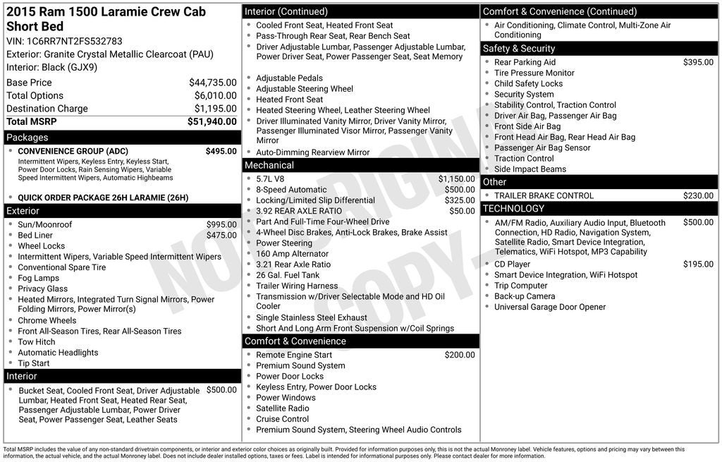- Vehicle Name: Ram 1500