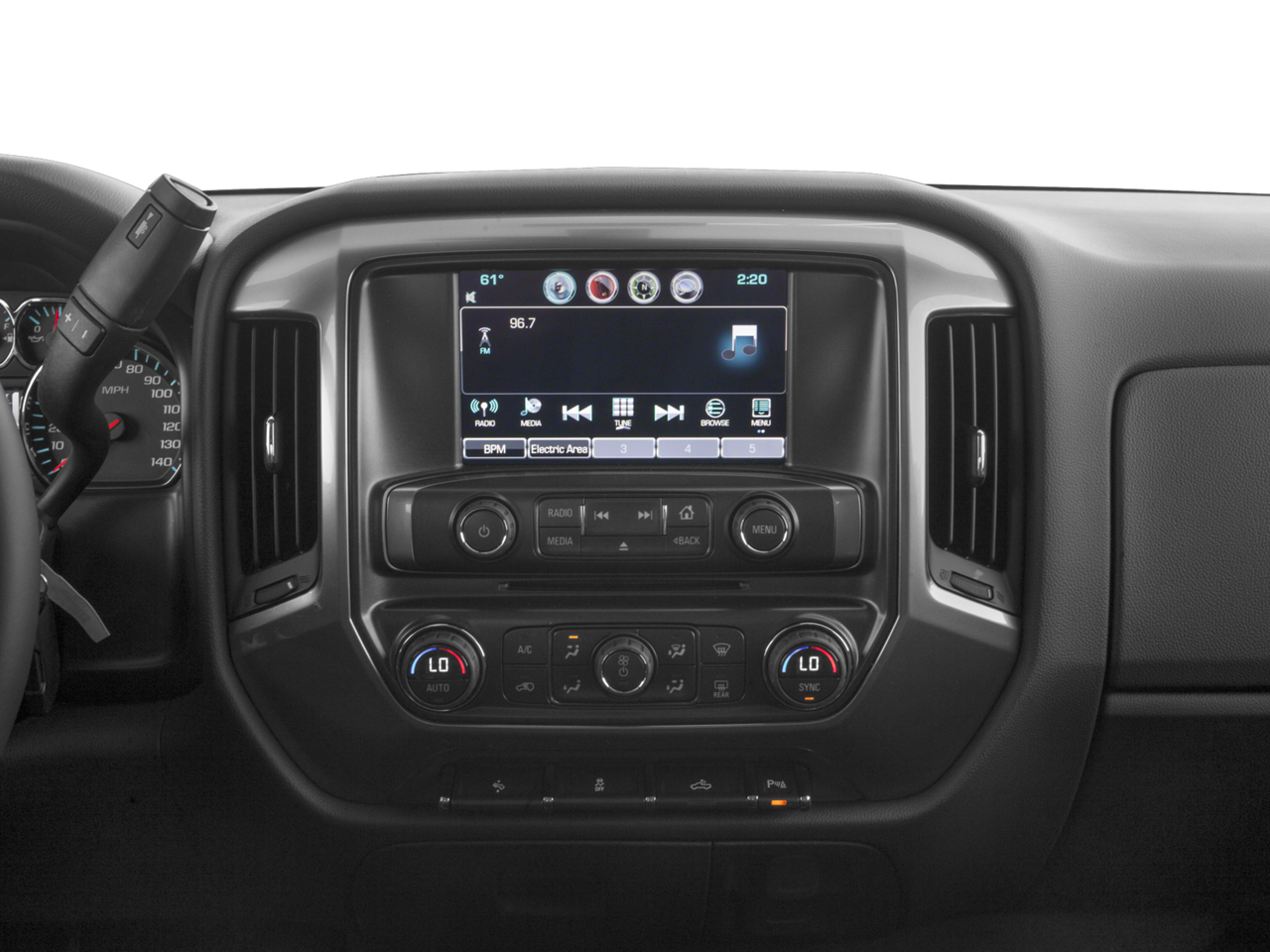 - Audio system, Chevrolet MyLink Radio with 8" diagonal color touch-screen, AM/FM stereo with seek-and-scan and digital clock, includes Bluetooth® streaming audio for music and select phones; USB ports; auxiliary jack; voice-activated technology for radio and phone