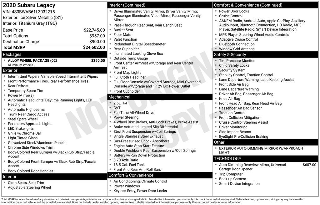 - Vehicle Name: Subaru Legacy
