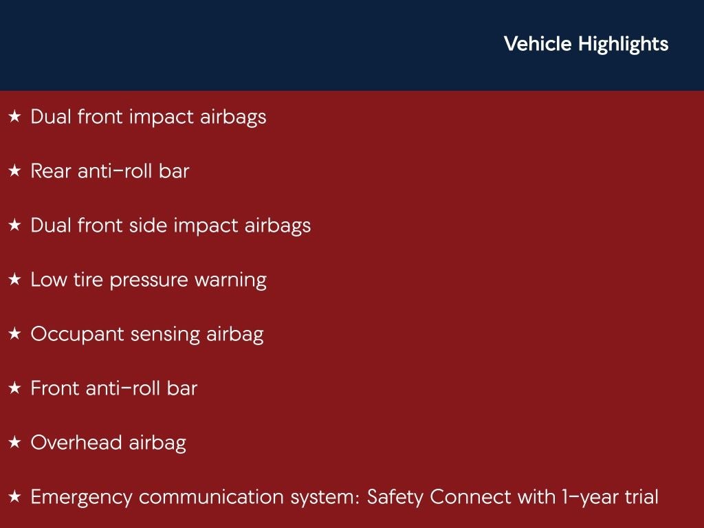 - Emergency SOS Capable Safety Connect with 1-year trial vehicle integrated emergency SOS system