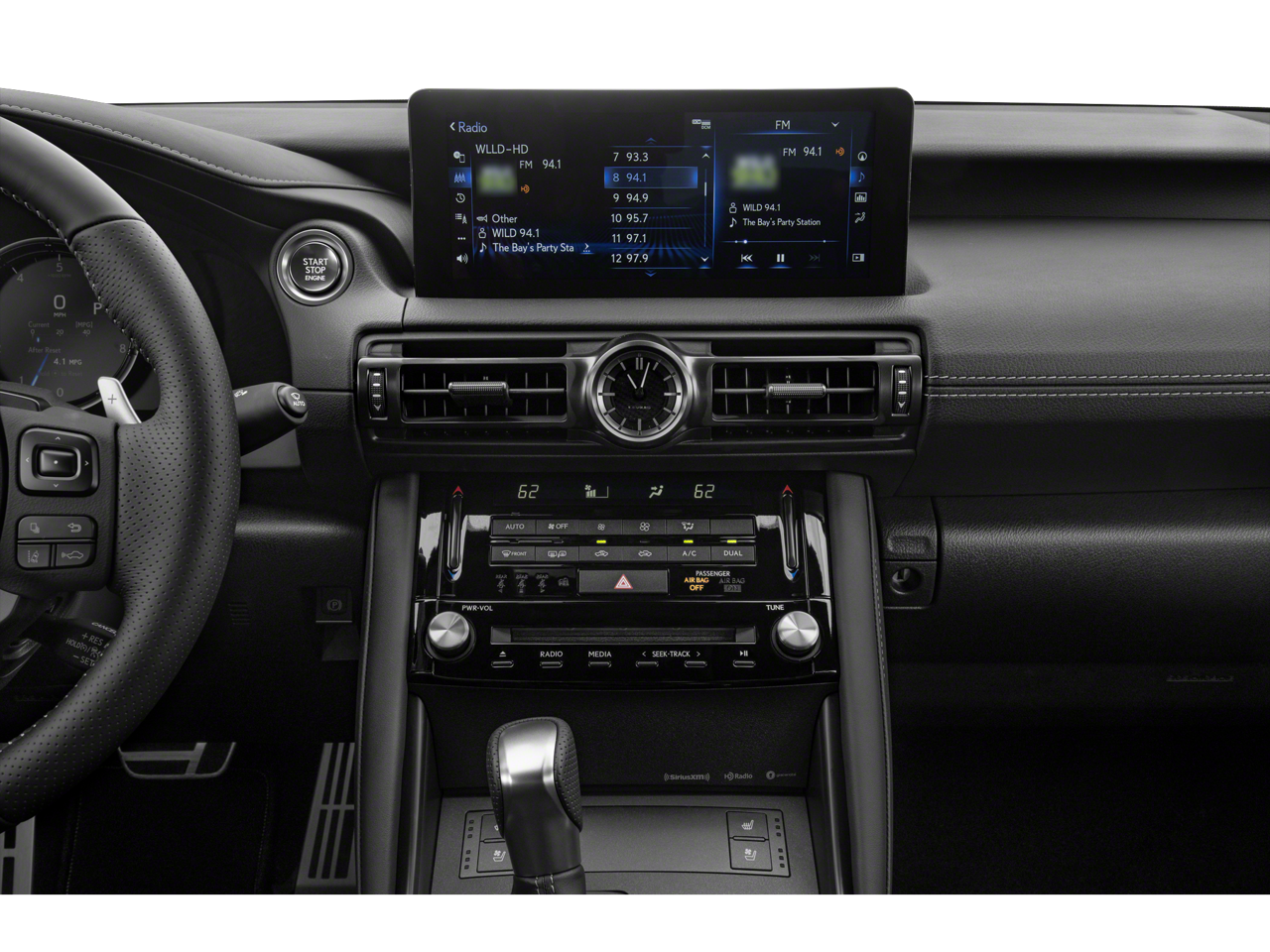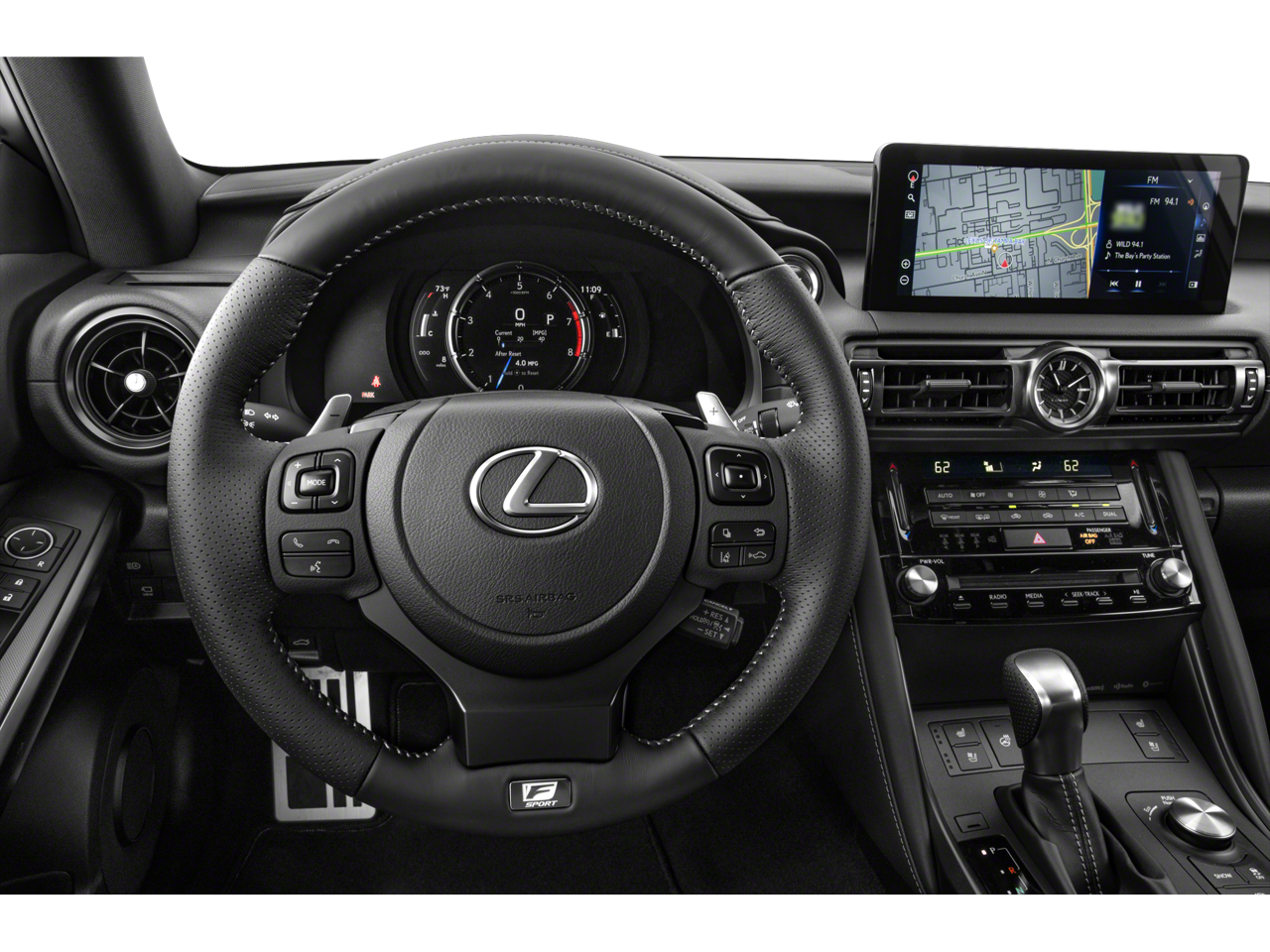IS 350 F SPORT, 4D Sedan, 3.5L V6 DOHC Dual VVT-i 24V, 6-Speed Automatic, AWD, Black w/Perforated NuLuxe Seat Trim, 10 Speakers, ABS brakes, Air Conditioning, Alloy wheels, AM/FM radio: SiriusXM, Automatic temperature control, Delay-off headlights, Dual front impact airbags, Dual front side impact airbags, Electronic Stability Control, Exterior Parking Camera Rear, Front Bucket Seats, Front dual zone A/C, Heated & Ventilated F SPORT Seats, Heated front seats, Illuminated entry, Knee airbag, Lexus Memory System for Driver's Seat, Memory Package, Moonroof, Navigation Package w/Mark Levinson Audio, Outside Mirrors w/Auto Tilt-Down in Reverse, Power driver seat, Power steering, Power Tilt & Telescoping Steering Wheel, Power windows, Radio: Multimedia System w/8 Color Touchscreen, Rear side impact airbag, Remote keyless entry, Steering wheel mounted audio controls, Tilt steering wheel, Traction control, Trip computer, Ventilated front seats.