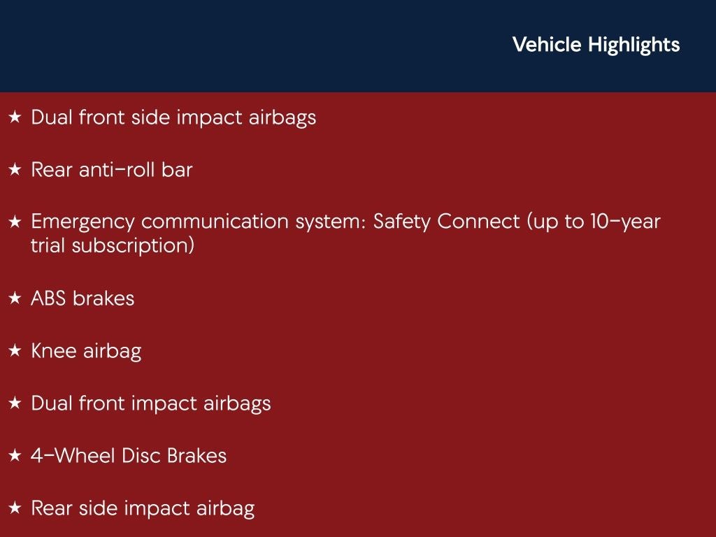 - Emergency SOS Safety Connect (up to 10-year trial subscription) vehicle integrated emergency SOS system