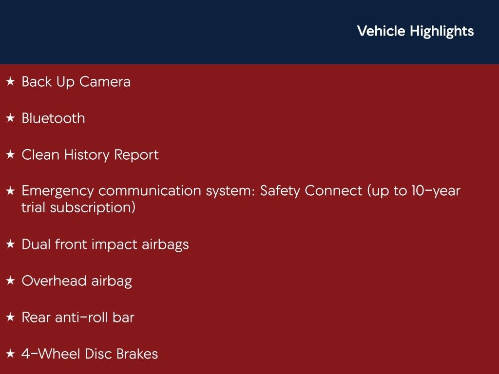 - Emergency SOS Capable Safety Connect (up to 10-year trial subscription) vehicle integrated emergency SOS system
