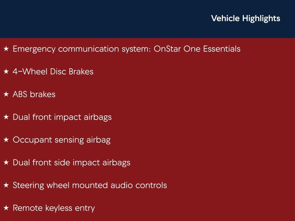 - Emergency SOS Capable OnStar One Essentials vehicle integrated emergency SOS system