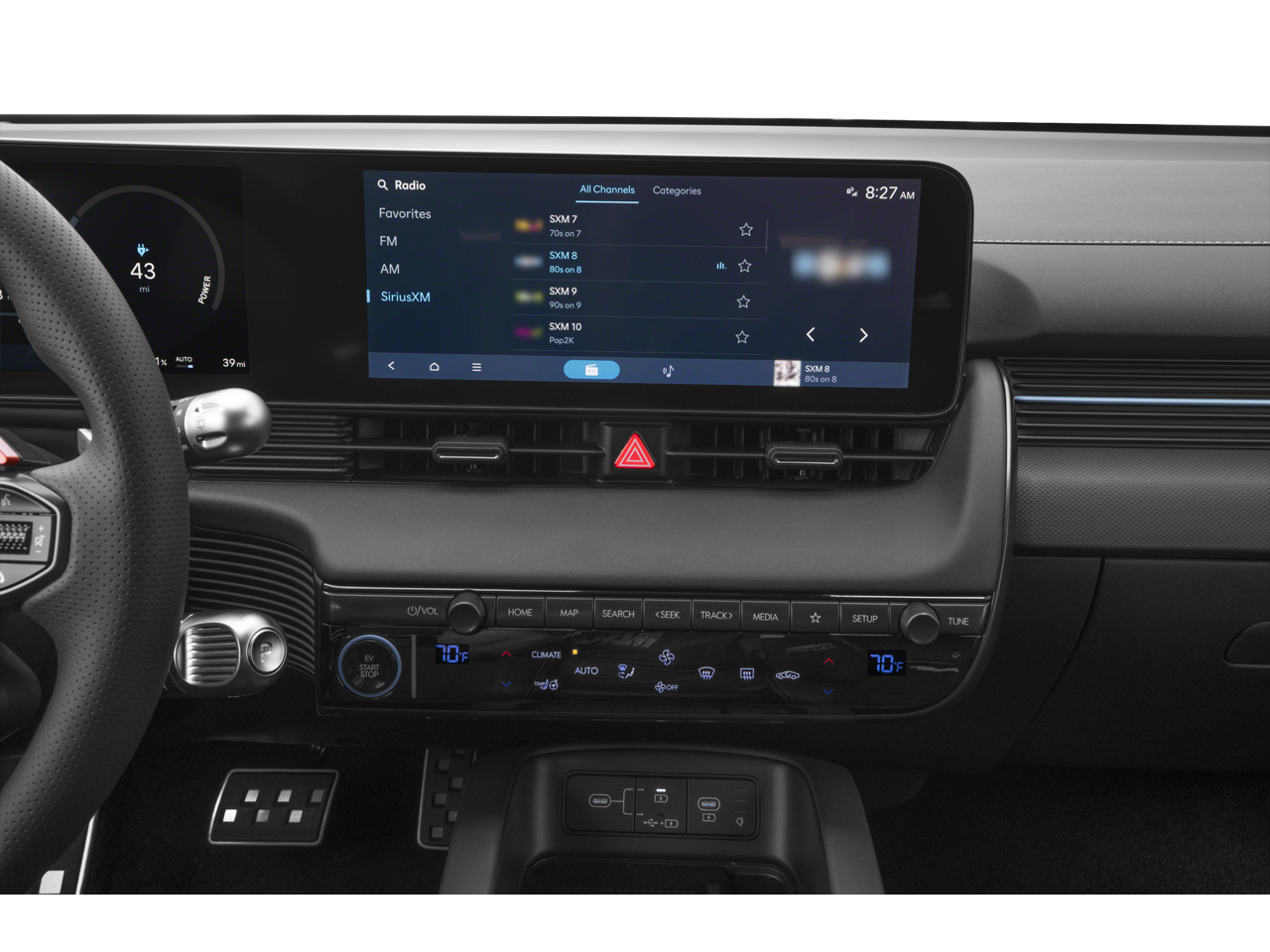 - Radio: AM/FM/SiriusXM/HD Display Audio System -inc: 12.3" ccNC navigation w/EV technology display, Bose premium audio system w/8 speakers, wireless Android Auto and Apple CarPlay, Blue Link connected car system w/remote charge access, Bluetooth® w/phonebook transfer, dynamic voice recognition, Hyundai Pay, USB connectivity and Wi-Fi hotspot