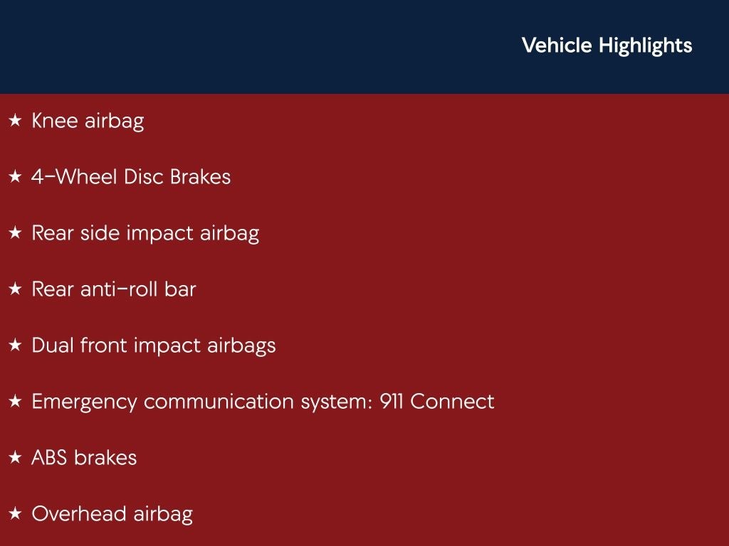 - Emergency SOS Capable 911 Connect vehicle integrated emergency SOS system