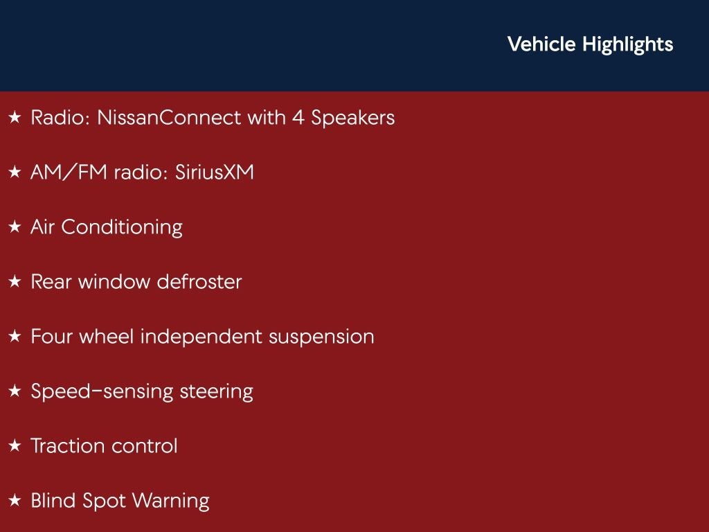 - Radio: NissanConnect with 4 Speakers