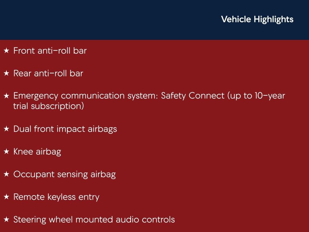 - Emergency SOS Capable Safety Connect (up to 10-year trial subscription) vehicle integrated emergency SOS system