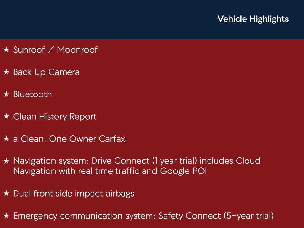 - Emergency SOS Capable Safety Connect (5-year trial) vehicle integrated emergency SOS system